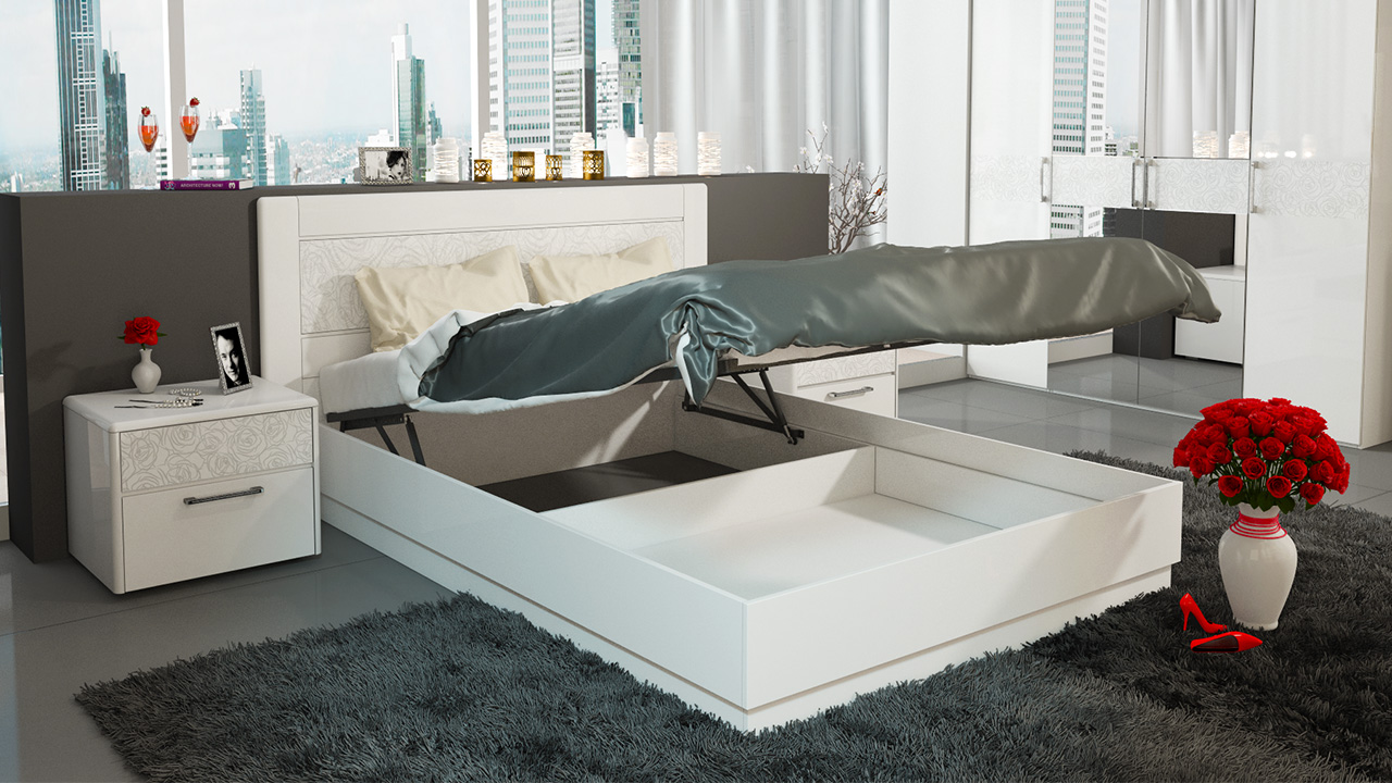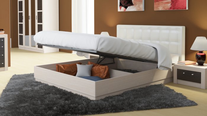 إذا كنت ترغب في جعل غرفة النوم أكثر اتساعًا وراحة ، فعليك شراء سرير مزدوج مع آلية الرفع.