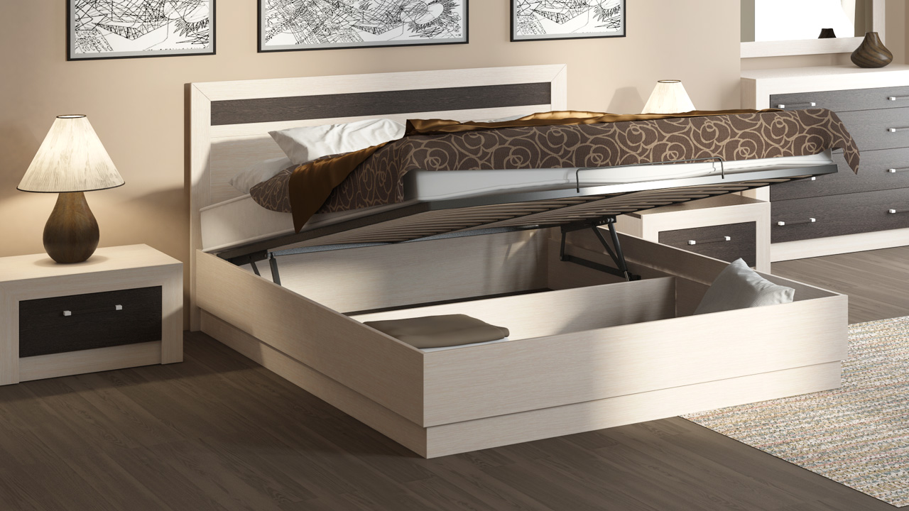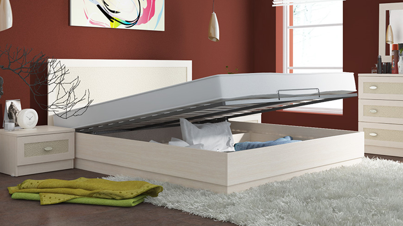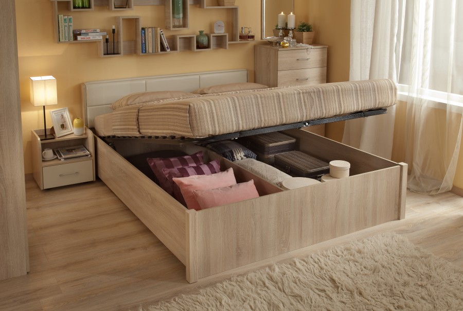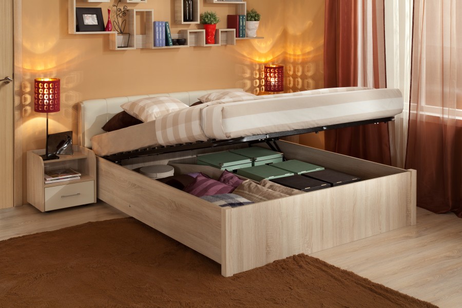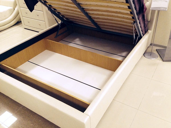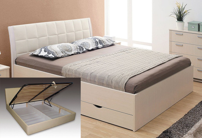 توفر آلية الرفع للسرير المزدوج ، رفع القاعدة ، سهولة الوصول إلى أقسام الكتان الموجودة تحتها ، مقارنة بالأدراج الكلاسيكية القابلة للسحب. هذه هي واحدة من مزايا السرير المزدوج.