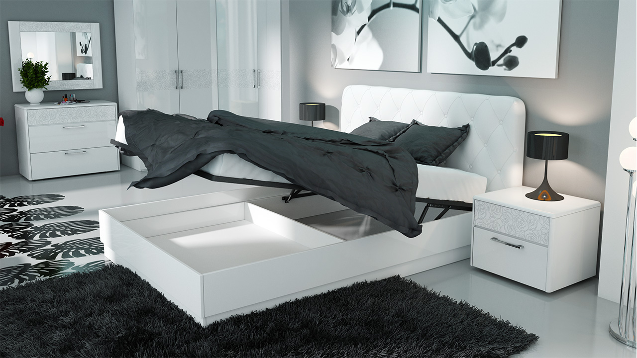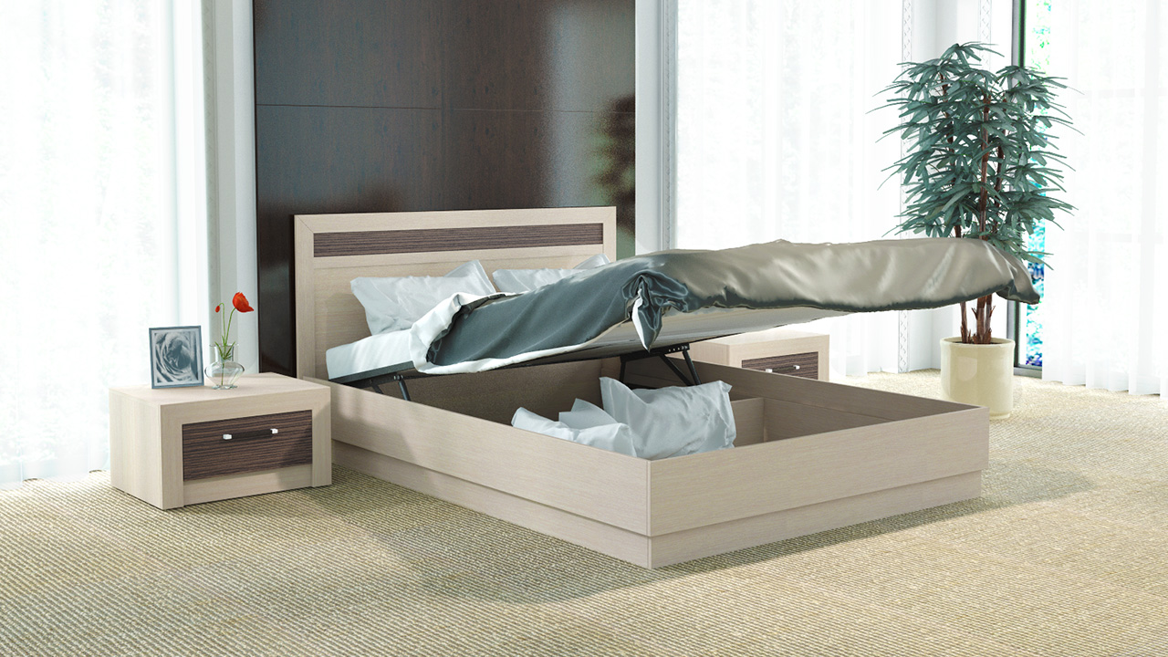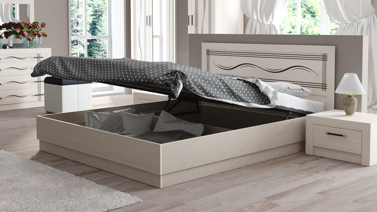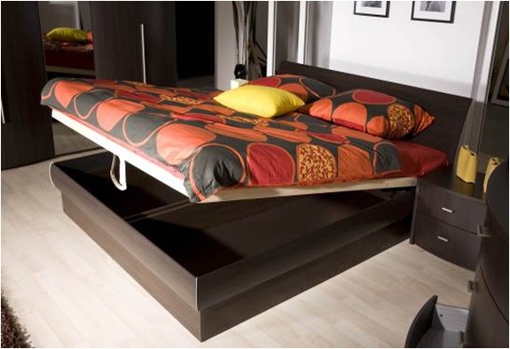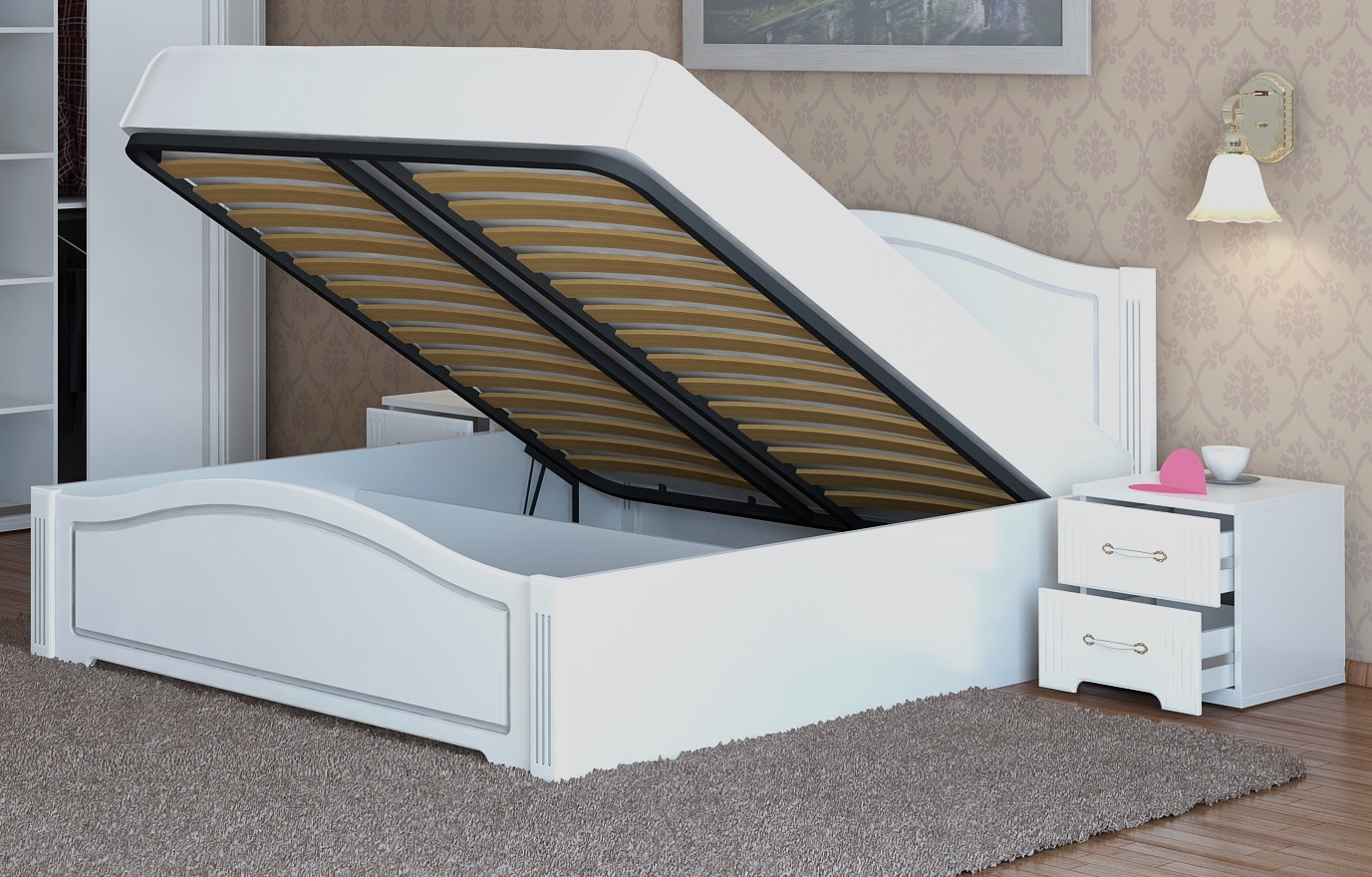توفر آلية الرفع للسرير المزدوج ، رفع القاعدة ، سهولة الوصول إلى أقسام الكتان الموجودة تحتها ، مقارنة بالأدراج الكلاسيكية القابلة للسحب. هذه هي واحدة من مزايا السرير المزدوج.