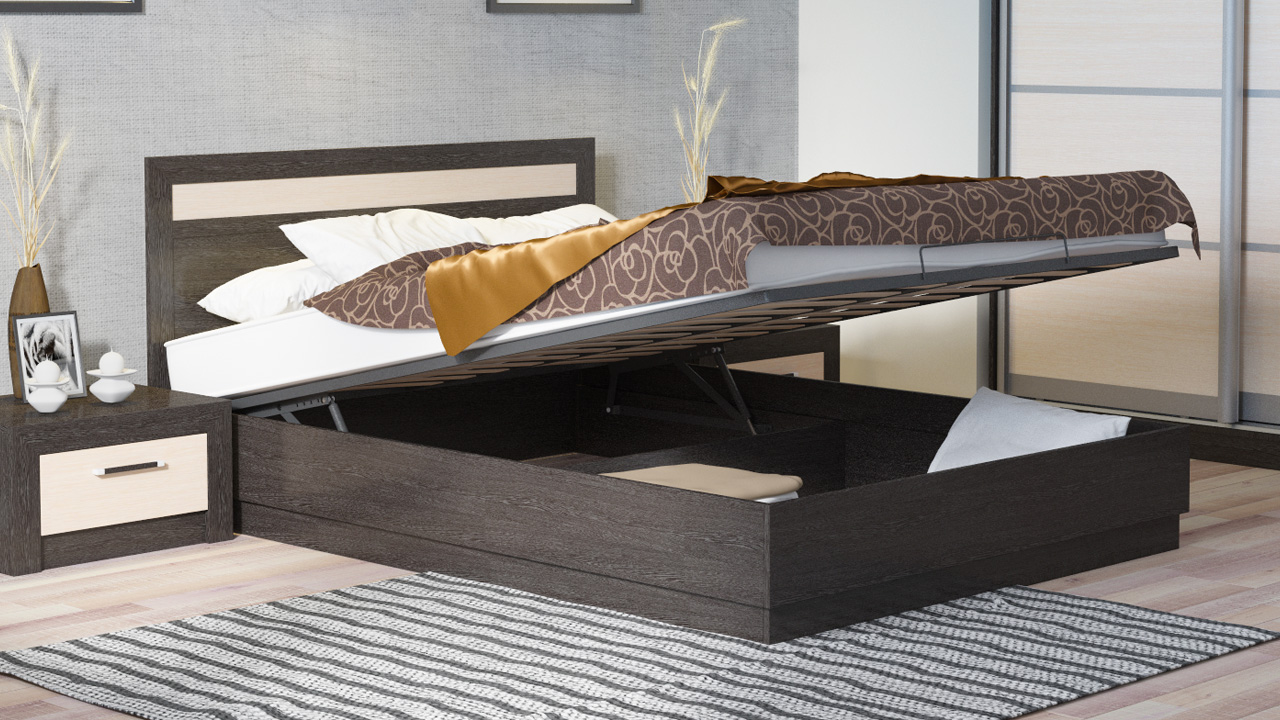 سرير مزدوج مع آلية الرفع: الحل لمشكلة التخزين.