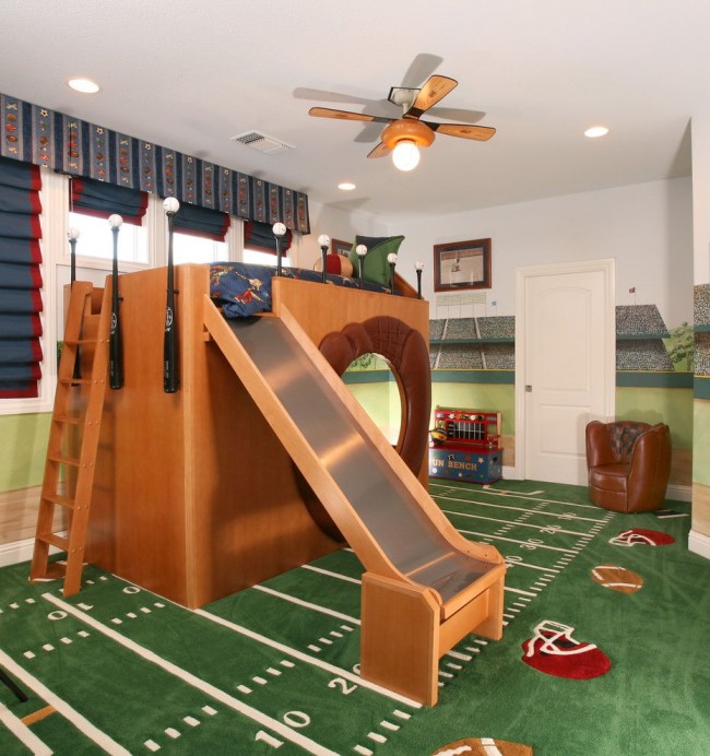 في تصميم غرفة الأولاد هي المواضيع الرياضية المناسبة.