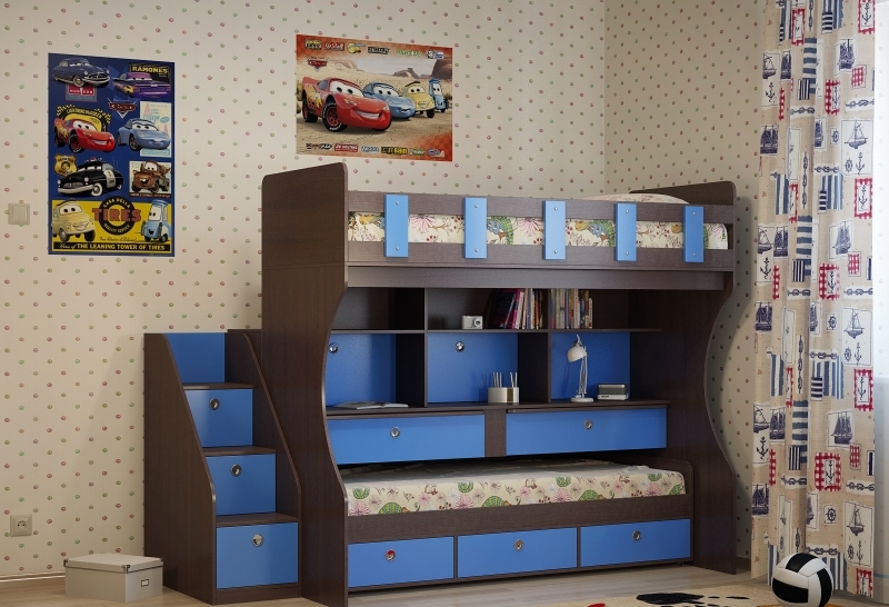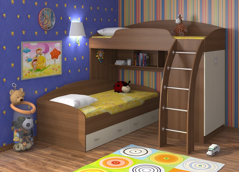 - بالنسبة للأطفال من مختلف الأعمار ، فإن الخيار الأفضل هو سرير بطابقينحيث المستوى العلوي يأخذ الطفل الأكبر.