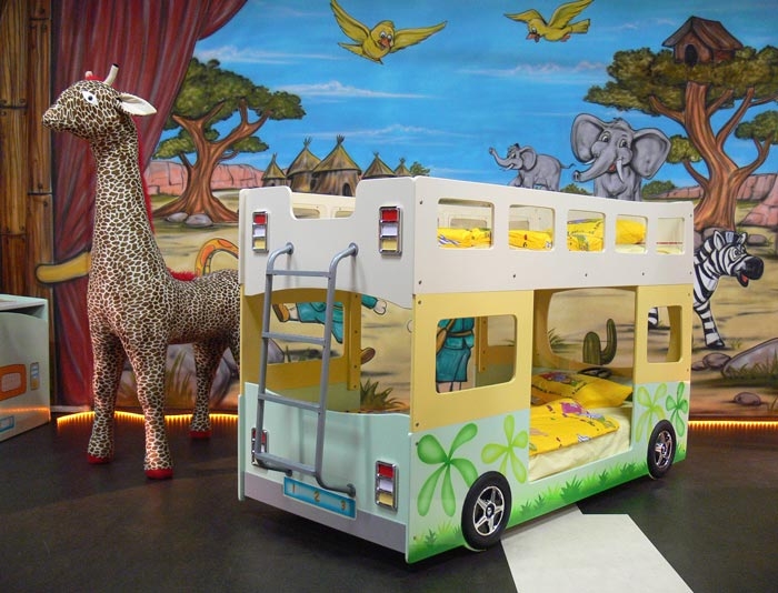 تسمح لك الحافلة ذات السرير بطابقين بتزيين الغرفة وجعل غرفة النوم ممتعة للأطفال.