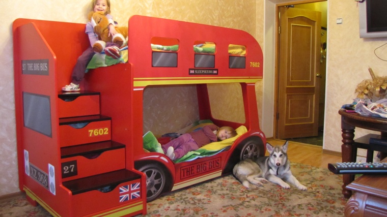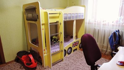 ممارسة تركيب أسرة في مستويين هي مناسبة للأطفال على وجه التحديد. هذا الحل يوفر المساحة ويجعل منطقة النوم أكثر فاعلية. يلاحظ علماء النفس أنه في مراحل نمو الأطفال ، تتطلب مساحة معيشتهم مزيدًا من التنوع. مجموعات مثيرة للاهتمام في داخل الحضانة تسمح لك بتحفيز مخيلة الطفل. غرفته هي عالم منفصل يجب أن يكون كل شيء فيه رائعًا. عناصر التصميم المختلفة في الحضانة ، مثل سرير الحافلة ، تخلق الدافع للتعلم وتطوير التفكير المكاني.