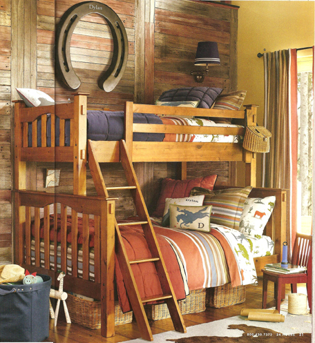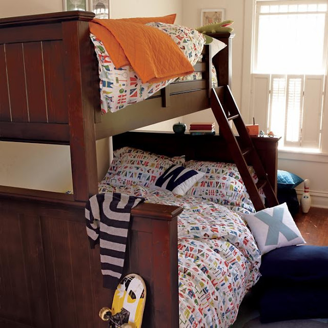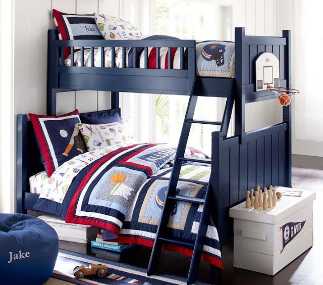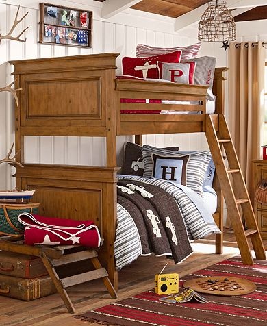 إذا قمت ببناء سرير كلاسيكي بطابقين ، وفكرت فقط في التصميم لاحقًا ، فاستخدم أي المنسوجات للزينة: الوسائد ، الحلي المعلقة. نعلق الحبل.