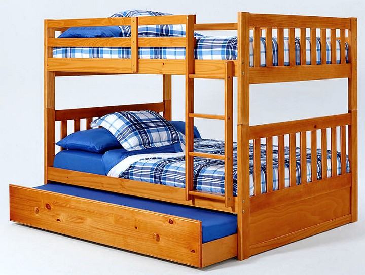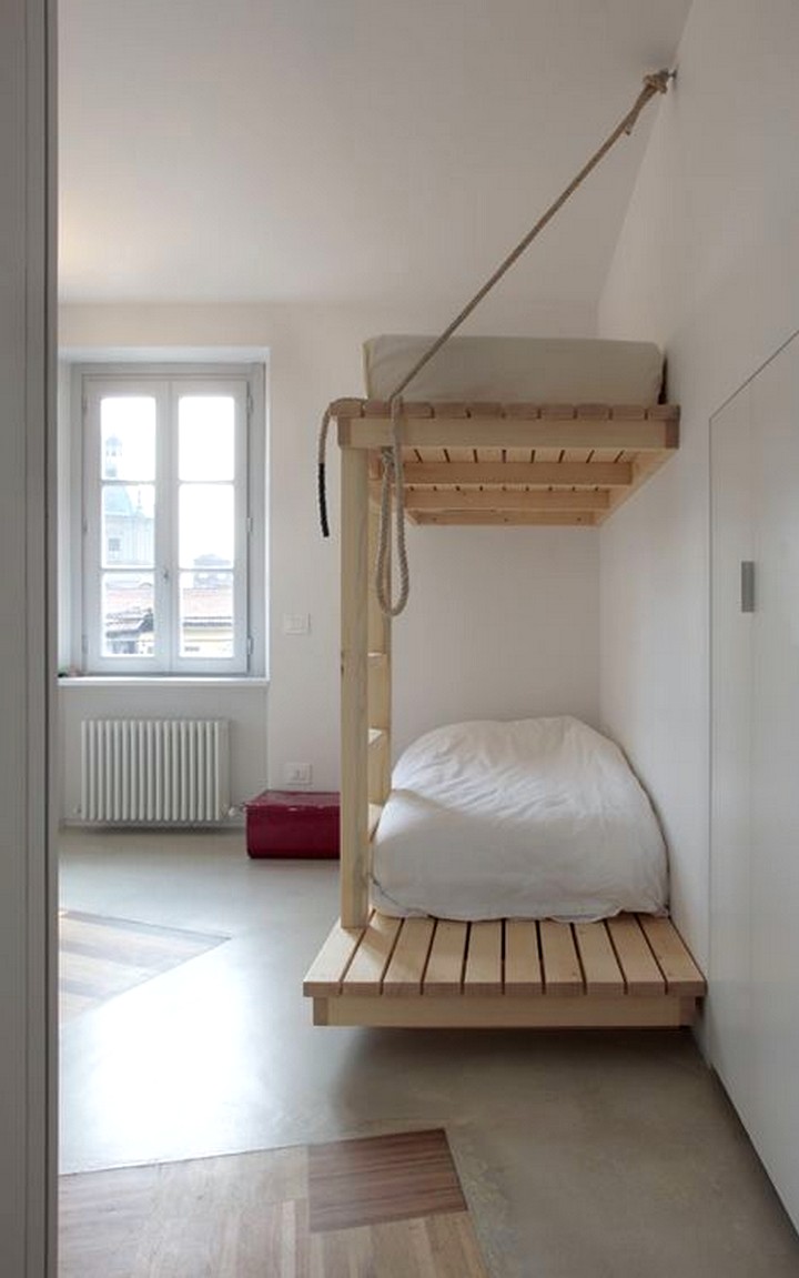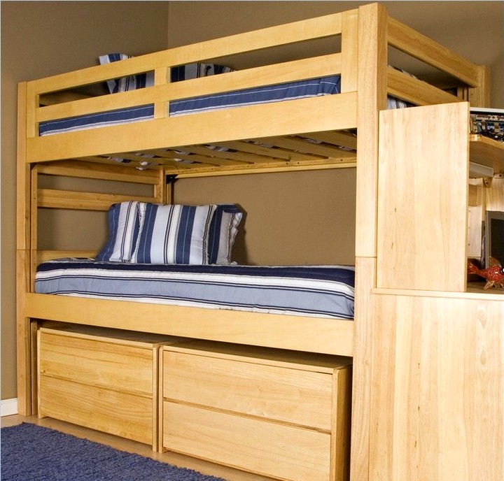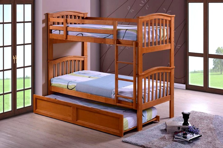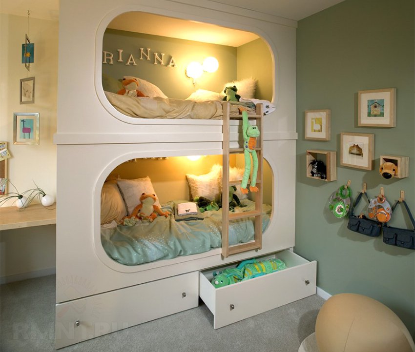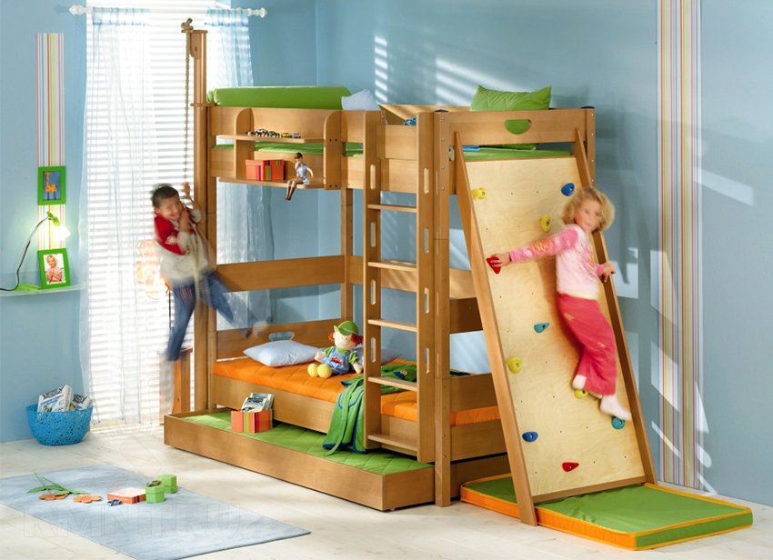 هناك العديد من المقترحات لجعل سرير بطابقين ثلاث غرف نوم. إذا طفل لا تزال صغيرة ، إلى جانب الشقة غرفة واحدةيمكن أن تفعل ذلك مع سرير مزدوج على المستوى الأول. إذا كان هذا البند هو ل طفل - يمكن وضع كلا المكانين في الأعلى.