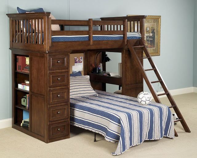 هذه النماذج تحظى بشعبية كبيرة لأنها توفر مساحة كبيرة. وهو يتألف من طاولة وخزائن و مرسى. يمكن أن يكون قابل للسحب طاولة أو فراش.