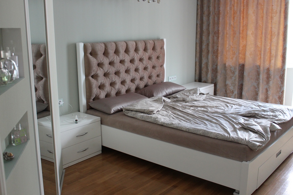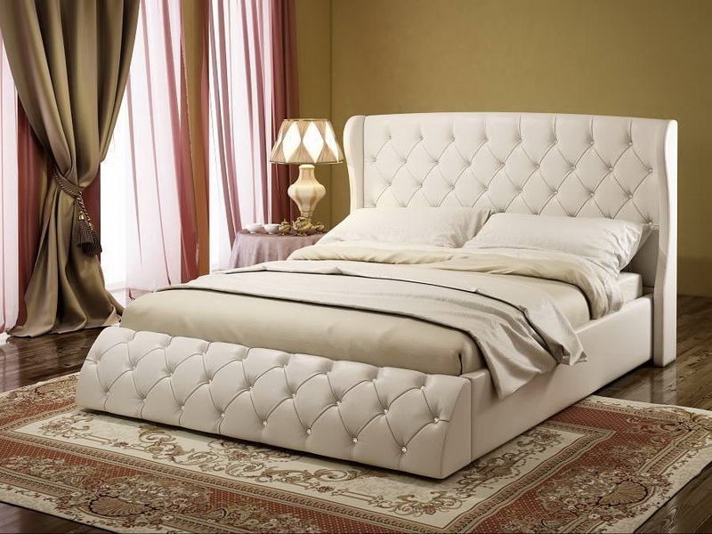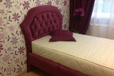 إذا رغبت في ذلك ، يمكن أيضًا تغطية إطار السرير بنسيج الأثاث نفسه المستخدم في صنع لوح أمامي ناعم. يتم تطبيق المطاط الرغوي الرفيع على صندوق السرير وملفوفة حول حشوة البوليستر. البنية المُعدة مغطاة بقطعة قماش يتم تثبيتها بواسطة دباسة من داخل صندوق السرير. يمكن تزيين الجانب الخارجي من الصندوق ، وكذلك حدود اللوح الأمامي ، بأزرار الأثاث أو الحبال الزخرفية.