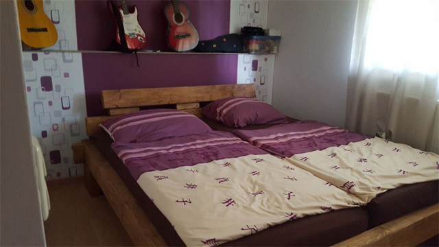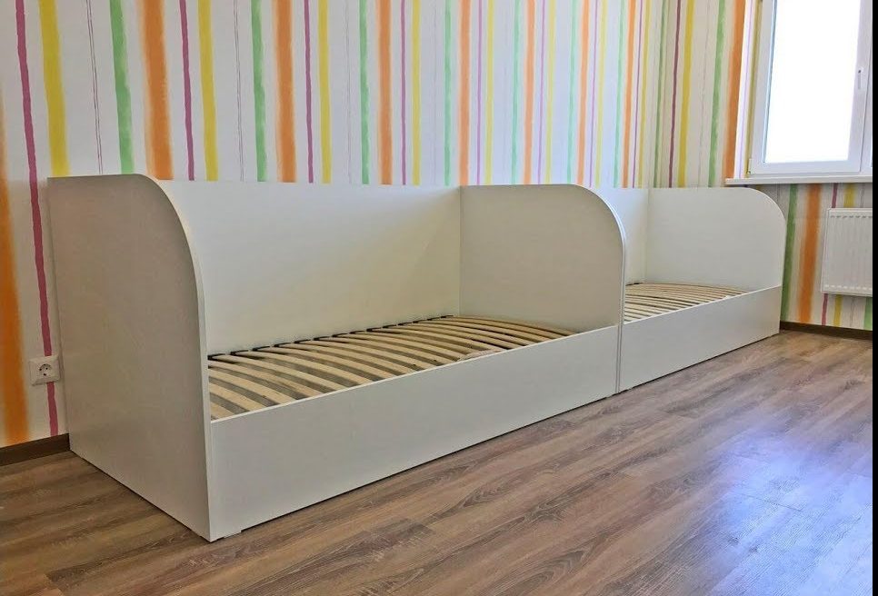 - 4 أخشاب الصنوبر على طول السرير (للقاعدة تحت الفراش) ؛