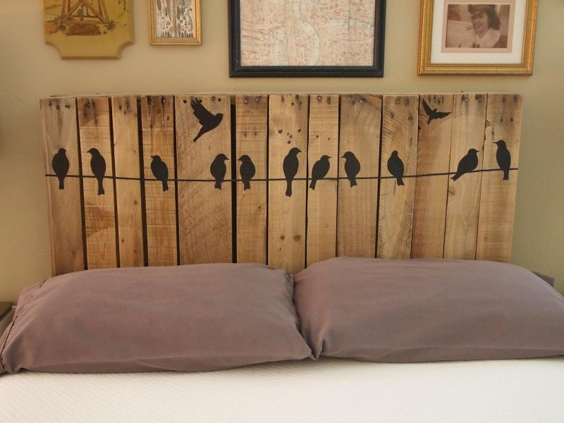 لقد صنعنا الأثاث من الخشب الطبيعي ، لذلك سنفتحه فقط بالورنيش. هذه الخطوة هي الخيار الأفضل ، لأن الورنيش سيؤكد فقط على الجمال الطبيعي للشجرة. ولكن إذا كنت تريد جعل الغرفة ساطعة ، فقم بطلاء السرير بلون مشرق. إنه أيضًا خيار جيد لطلاء المنتج باللون الأبيض أو بألوان محايدة أخرى وتطبيق أنماط مثيرة للاهتمام. يمكنك القيام بذلك مع فرش. وإذا كانت مهاراتك الفنية تترك الكثير مما هو مرغوب فيه - بمساعدة الإستنسل. كل هذا يتوقف على خيالك!