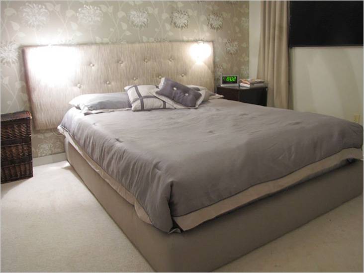 السرير مع اللوح الأمامي الناعم هو حل ممتاز في تصميم الشقة