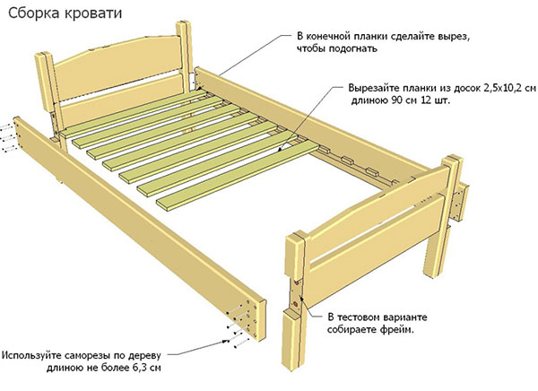 قبل شراء كل ما تحتاجه والقيام بالسرير بيديك ، وكذلك الشرائح ، يجب عليك إكمال رسم مفصل. لسرير مزدوج المعلمات القياسية سوف تتطلب المواد التالية.