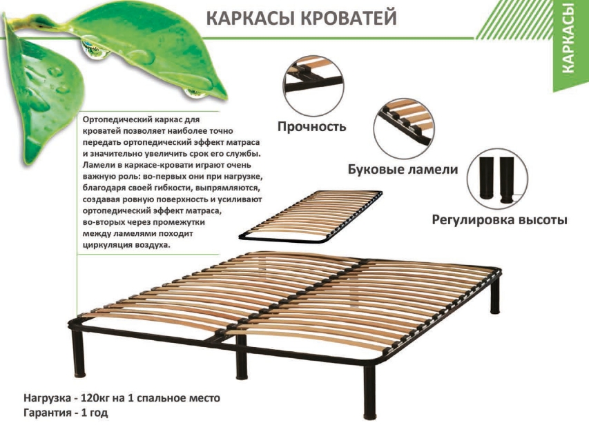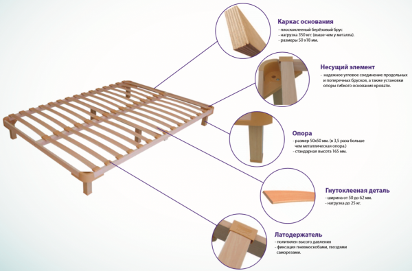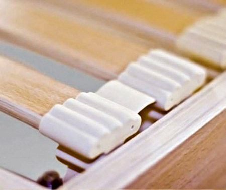 بالنسبة للأسرة ، يمكن صنع الشرائح من الخشب بشكل خاص. غالبا ما تستخدم البتولا والحور. يتم اختيار هذه المواد لمرونتها ومرونتها. يساهم الخشب أيضًا في التهوية الممتازة للفراش.