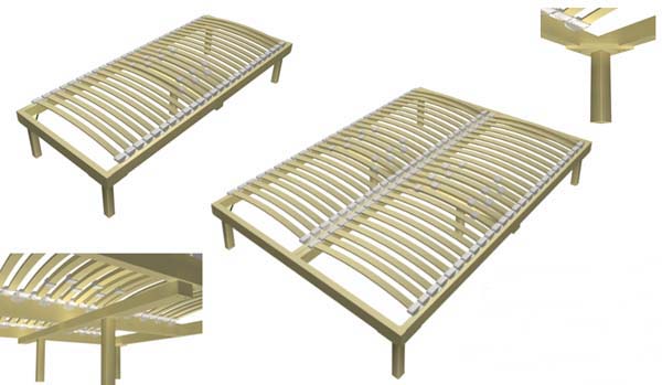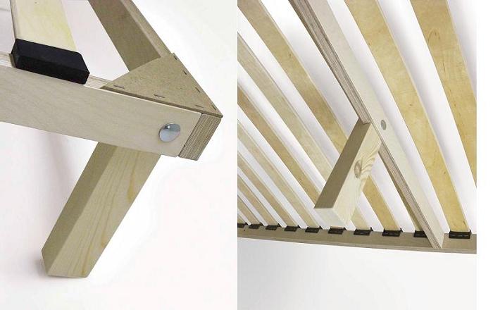 - توجد الشرائح أو الخشب الرقائقي على إطار مصنوع من قضبان عالية القوة.