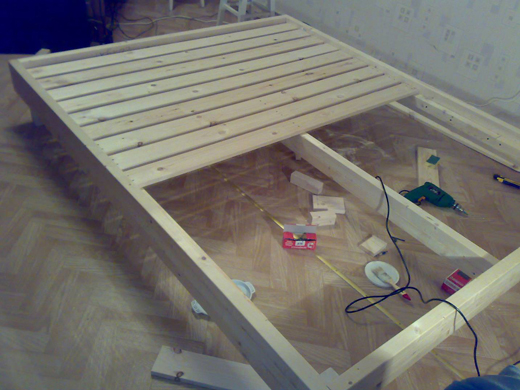 الإطار جاهز. انها موثوقة وقوية جدا. لتجميع قاعدة السرير الخشبي كانت عملية سهلة ، يجب عليك توصيل الأجزاء بمسامير ذاتية التنصت ، تحتوي على زوايا تثبيت إضافية وزوايا معدنية.