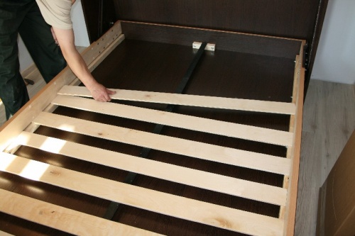 يمكن تثبيت الشرائح في قاعدة السرير بشكل مستقل ، فهي لا تتطلب بعض المعدات باهظة الثمن.