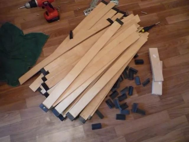 الآن يمكنك الانتقال إلى قاعدة التجميع lamella. هذه شرائط عرضية تدعم المرتبة ولا تسمح لها بالتشوه.