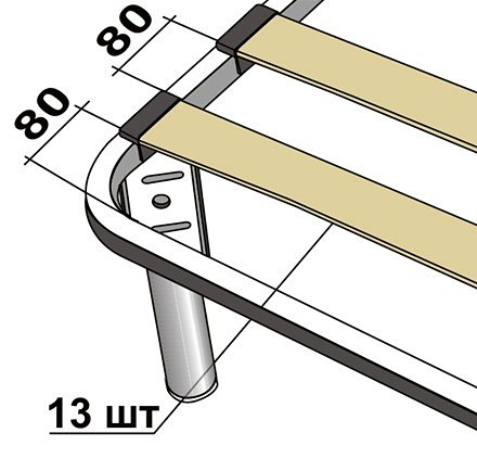 - حجم الحامل 150 × 4 × 2 سم ، وسيصبح شريطًا متقاطعًا عند قاعدة السرير. هناك حاجة أشعل النار لتأمين لوحات اللوح الأمامي.