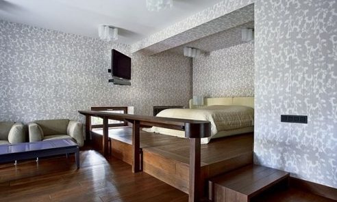 كما هو الحال في الإصدار مع سرير في المستوى الثاني ، فإن الجدار المنزلق "shoji" سيخلق جواً لطيفاً على الطراز الياباني. يؤدي الجدار القابل للسحب إلى التخلص من الضوضاء الخارجية (إن وجدت) ، والروائح الغريبة من المطبخ (خاصةً إذا كان أولئك الذين يحبون القيلولة بعد الظهر يعيشون في الشقة وقراءة الكتب).