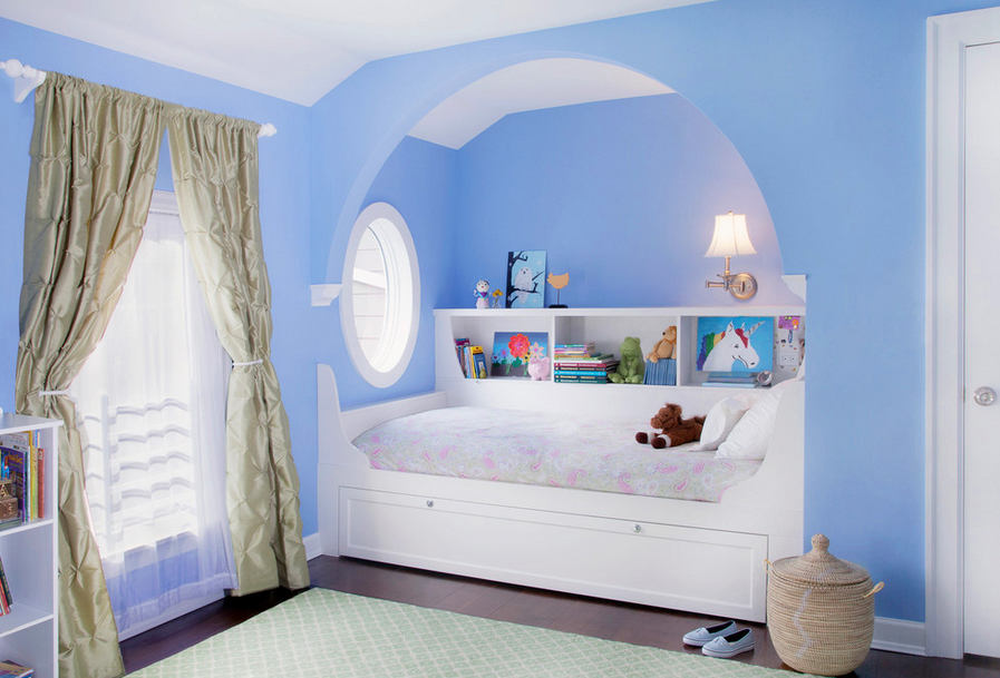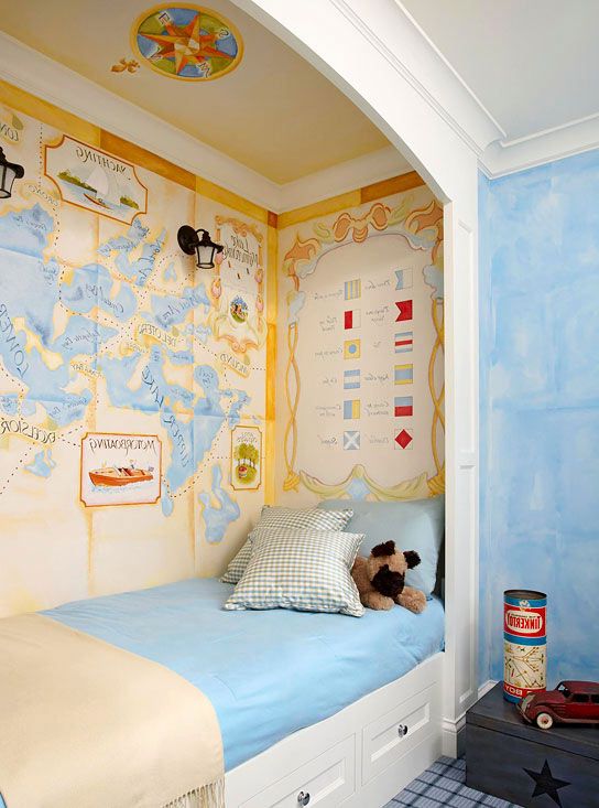 ربما الجهاز وفي المستوى الثاني. إذا كان هناك مكان منفصل لخزانة ملابس ورف ، فسيكون من المثير للاهتمام إنشاء مكانة بأسلوب موضوعي ، مع استخدام الزخارف ، وما إلى ذلك (خيار لسرير للأطفال).