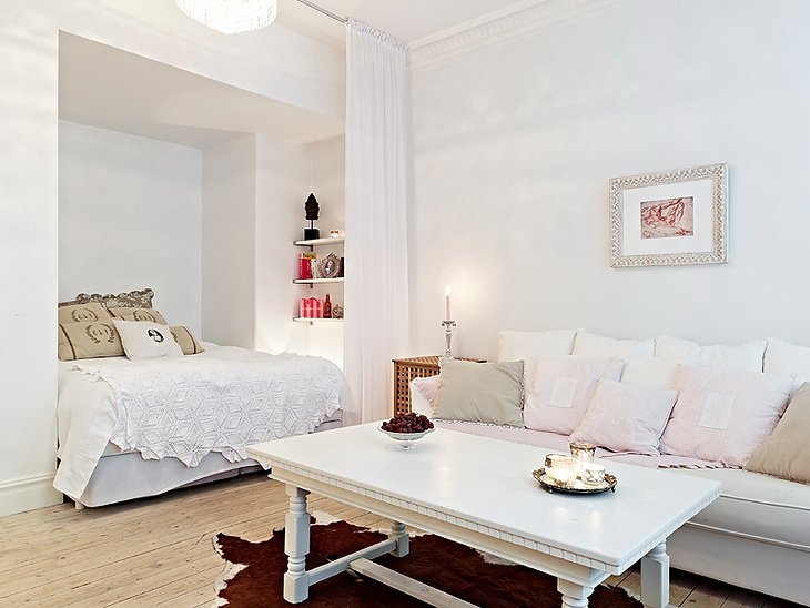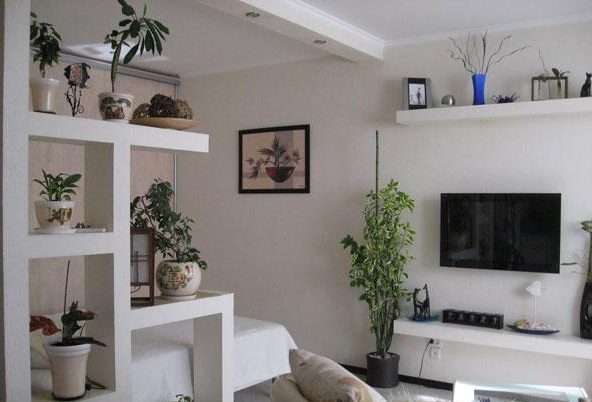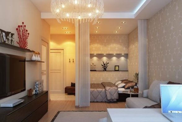 في شقة الاستوديو المكونة من غرفة واحدة ، غالبًا ما تخلق ترتيبًا خلويًا للأشياء: قطاع النوم وخزانة الملابس ؛ منطقة ترفيهية مع تلفزيون وطاولة قهوة وأريكة. إذا كنت تسمح مربع الشقة - طاولة طعام للضيوف. ثم سنتحدث عن تقسيم الغرفة إلى غرفة نوم وخزانة ملابس وتنظيم الرصيف - عن سرير في مكانه.
