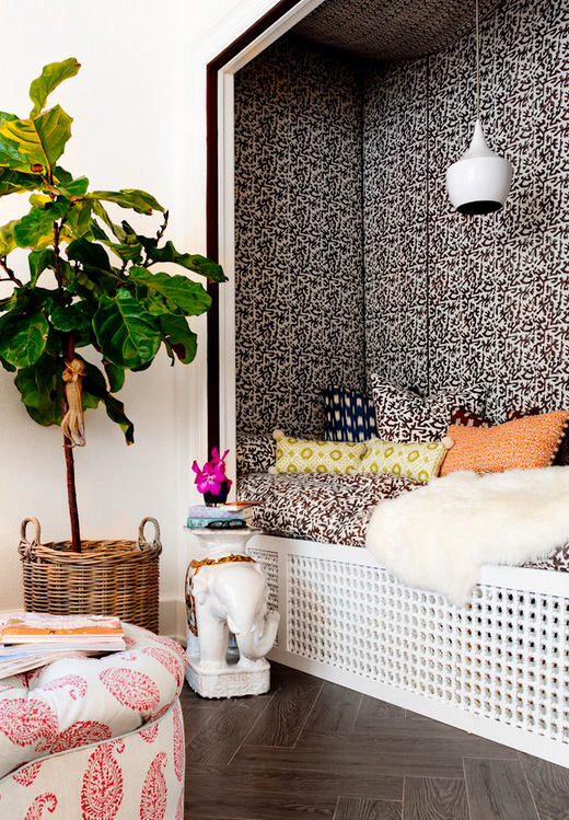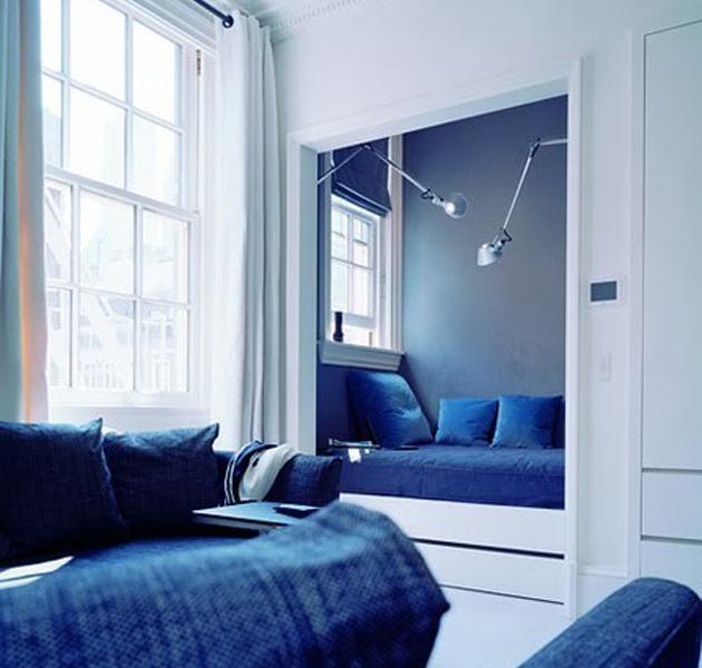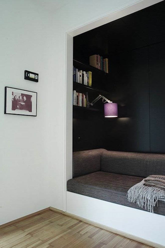أيضا وراء أريكة يمكن أن تستوعب خزانة صغيرة أو رف. يتيح ركن المعيشة هذا استخدامًا اقتصاديًا لمساحة شقة من غرفة واحدة.
