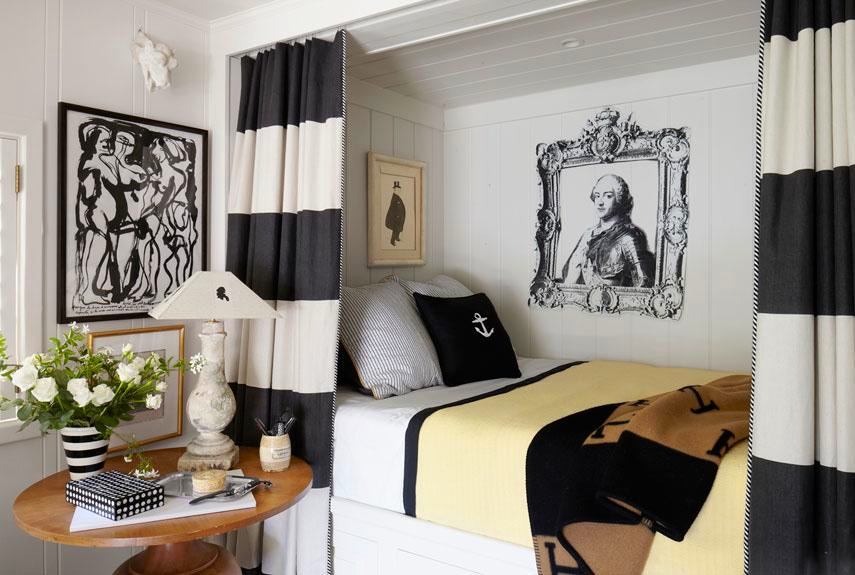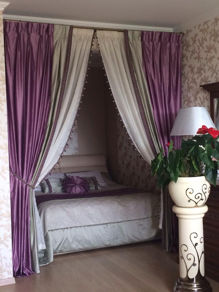 سرير وخزانة ملابس منفصلة بشكل منفصل وستائر متناقضة من منطقة الضيف