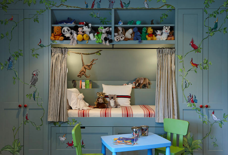 قل ، إنه ينطبق على سرير للأطفال ، الكنغر مع أكياس خزانة ، وقفل عند وضع سرير بطابقين في مكانه: بوابة القلعة سرير ؛ نوافذ - خزائن بأبواب زجاجية وأبراج القلعة - مصابيح.