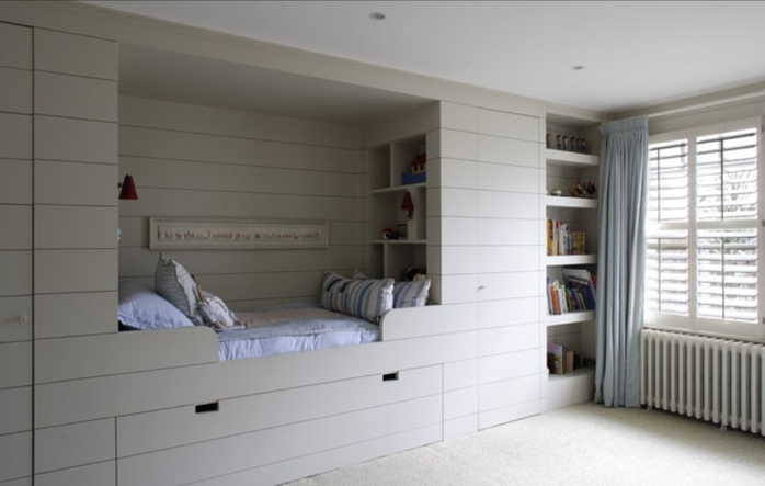 بالإضافة إلى هذه الأنواع من السرير في مكانه وينقسم إلى المدمج في وغير المدمج. في المقابل ، يمكن أن يكون الأول: الطي والانزلاق. بلا بنى - كمحول. تماما مثل الأسرة ، ومنافذ نفسها تختلف في التصميم والغرض. يمكن أن يكون هذا منبرًا به سرير منزلق مدمج تحته ، أرفف للملابس أو بياضات للأسرة ، تقع أسفل السرير وخلف مكانه ، على التوالي ، أو محلول أكثر جرأة - جدار ملائم ، مع سرير قابل للطي.