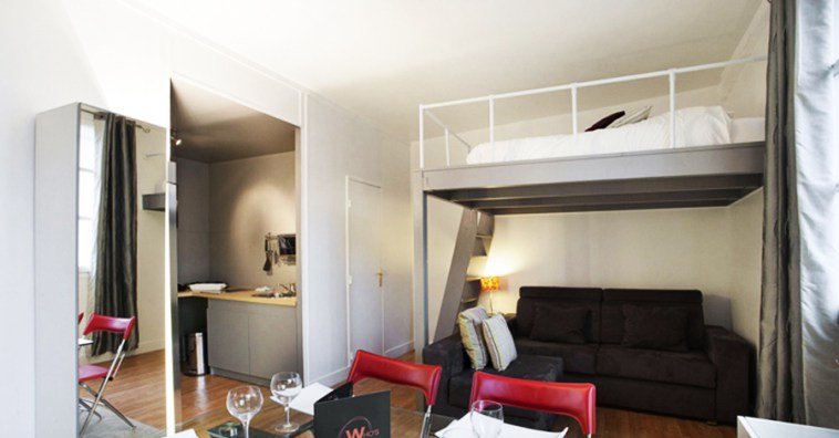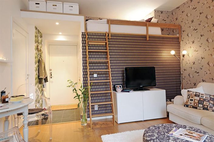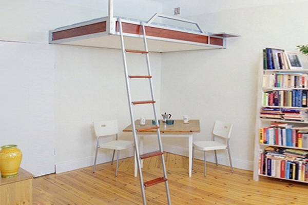 سرير علوي مخفي لشقة استوديو مع تصميم غير عادي