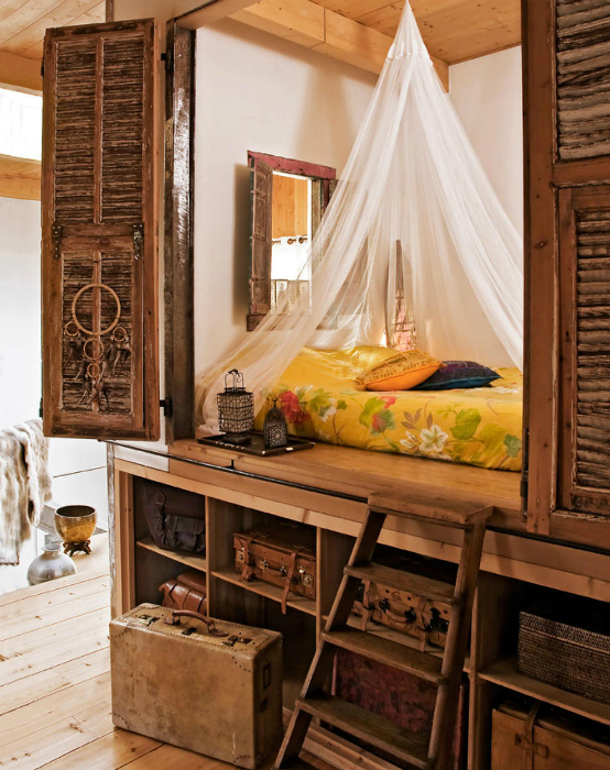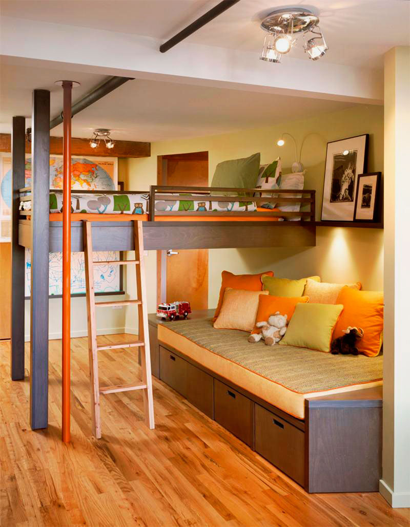 | مزيج مثالي مع الداخل | لا يتناسب السرير العلوي مع غرفة ذات سقوف منخفضة (تصل بعض الطرز في الارتفاع إلى ثلاثة أمتار |
