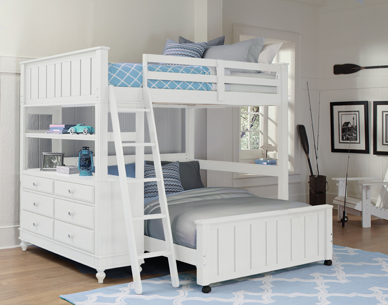 سرير علوي مدمج للبالغين مع أدراج وخزانة تخزين وخطوات مريحة ودرج