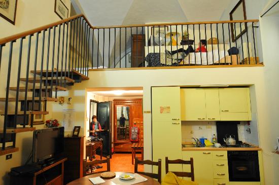 شقة استوديو مع سرير في الطابق العلوي للنوم وأريكة للاسترخاء ومشاهدة التلفزيون في القاع