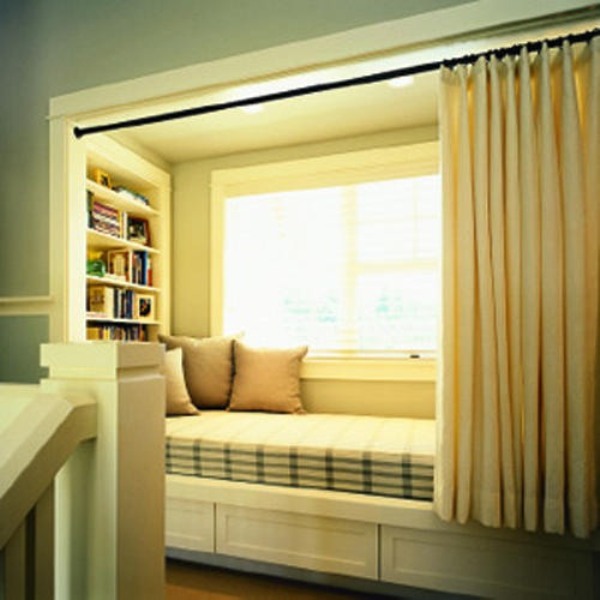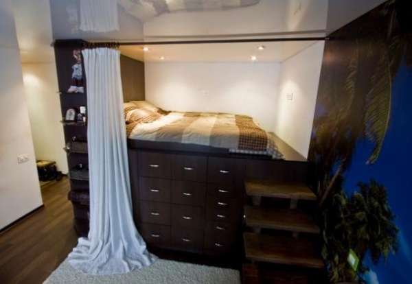لمحبي مكان منعزل للنوم ، والذي يمكن تسويته بواسطة ستارة وحتى باب ، سيكون حلاً رائعًا لإنشاء مكان عميق للسرير.