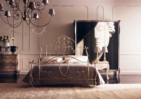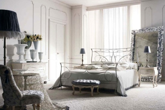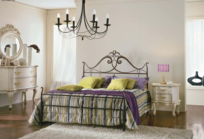 الإصدار الكلاسيكي هو أثاث من الحديد المطاوع الداكن. عادة ما تكون الأجزاء الداخلية من غرف النوم هذه صارمة وبسيطة ، ويمكن أن تحتوي الثريا وطاولة السرير على عناصر من الحديد المطاوع.