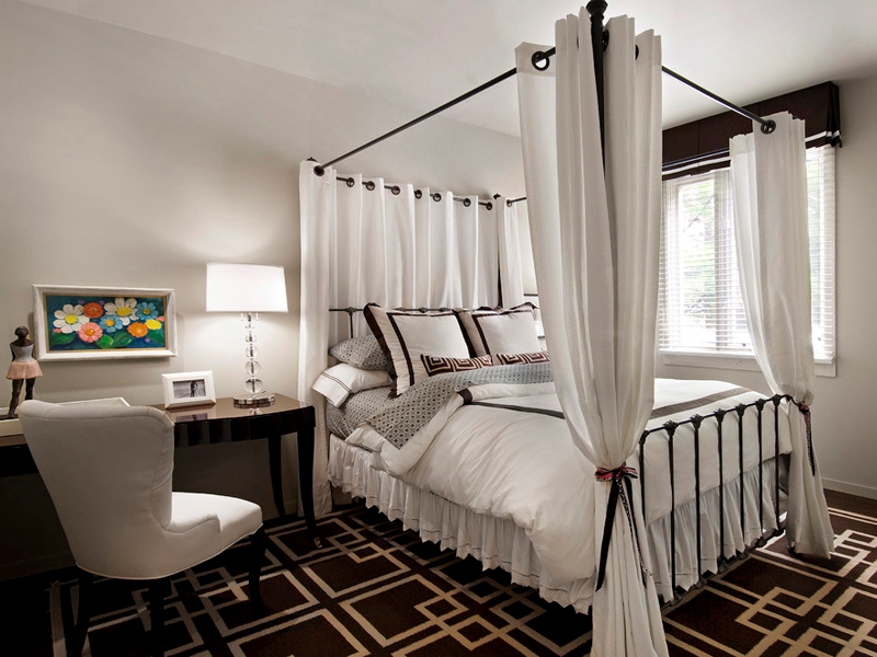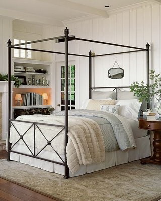 يجب إيلاء اهتمام خاص لنموذج سرير بأربعة أعمدة من الحديد المطاوع ؛ الخطوط الرفيعة والنسيج الرقيق سيخلق بيئة خفيفة بشكل خاص تعزز النوم الصحي.