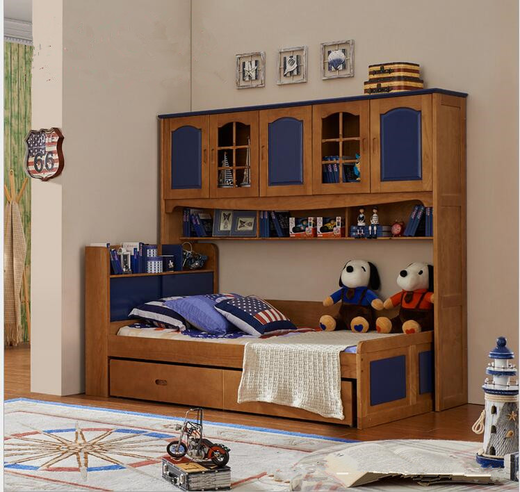 سرير مرتفع مصنوع من الخشب الصلب لغرفة نوم صغيرة