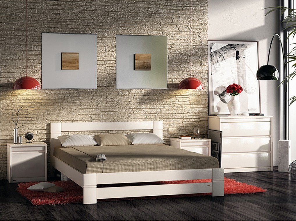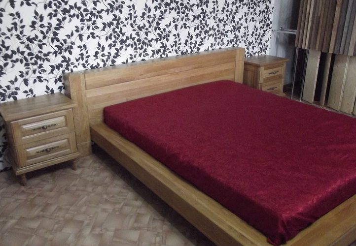 البلوط الطبيعي مع طلاء شفاف له لون فاتح والملمس الجميل. سوف يبدو مثل هذا السرير سيئًا على أرضية من الرماد الفاتح ، لكن يتناسب مع السجاد العادي أو البلوط الرقائقي. لا ينبغي أن تكون الشجرة أكثر من اللازم ، خاصة من السلالات والألوان المختلفة.
