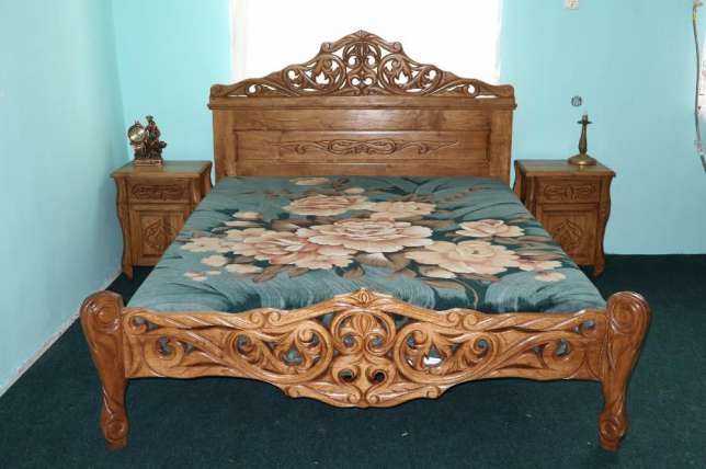 السرير الأصلي من كتلة صخرية شبه بلوط مع اليدين