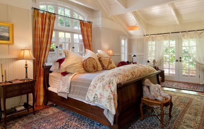 - الألوان - تبدو الألوان الداكنة أكثر نبلا ، لكن الألوان الفاتحة تجعل الغرفة أكثر اتساعًا. اعتمد على ذوقك ولون بقية الأثاث في غرفة النوم.
