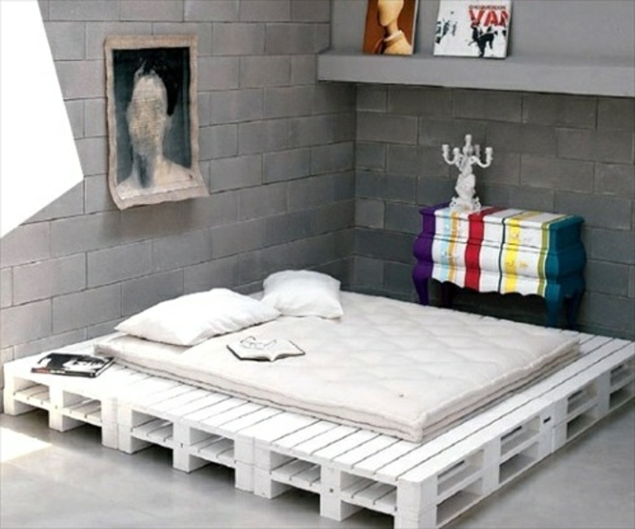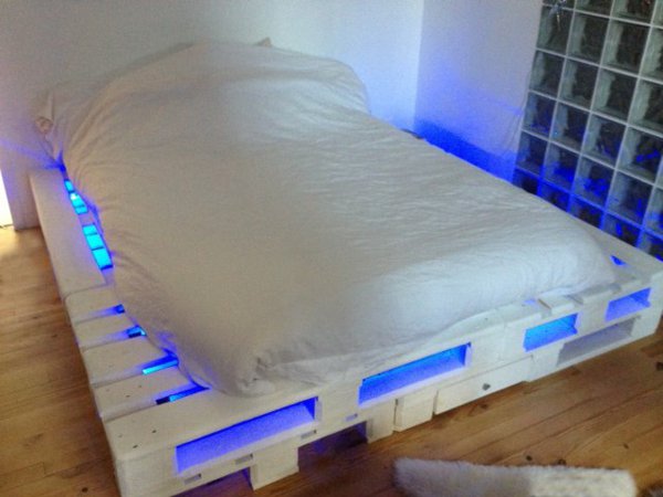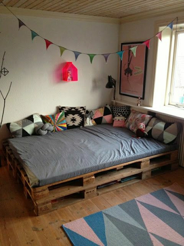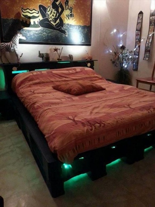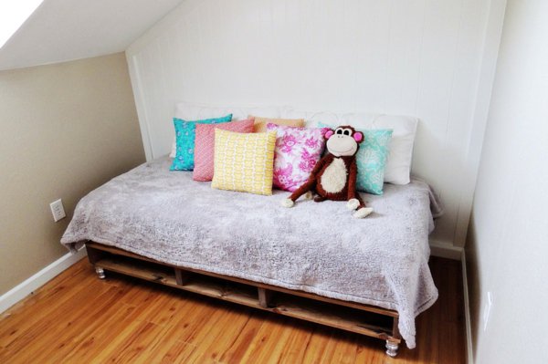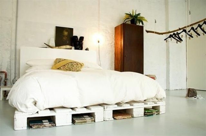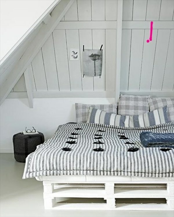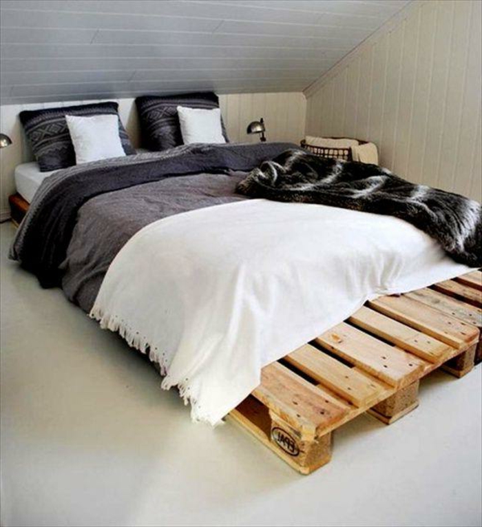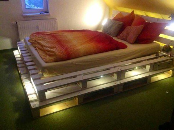سرير مصنوع من المنصات بيديك هو نسخة اقتصادية ومبتكرة: للحصول على أثاث غير عادي مصنوع من مواد صديقة للبيئة.