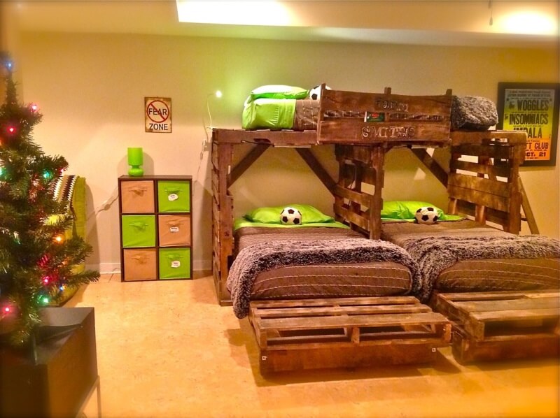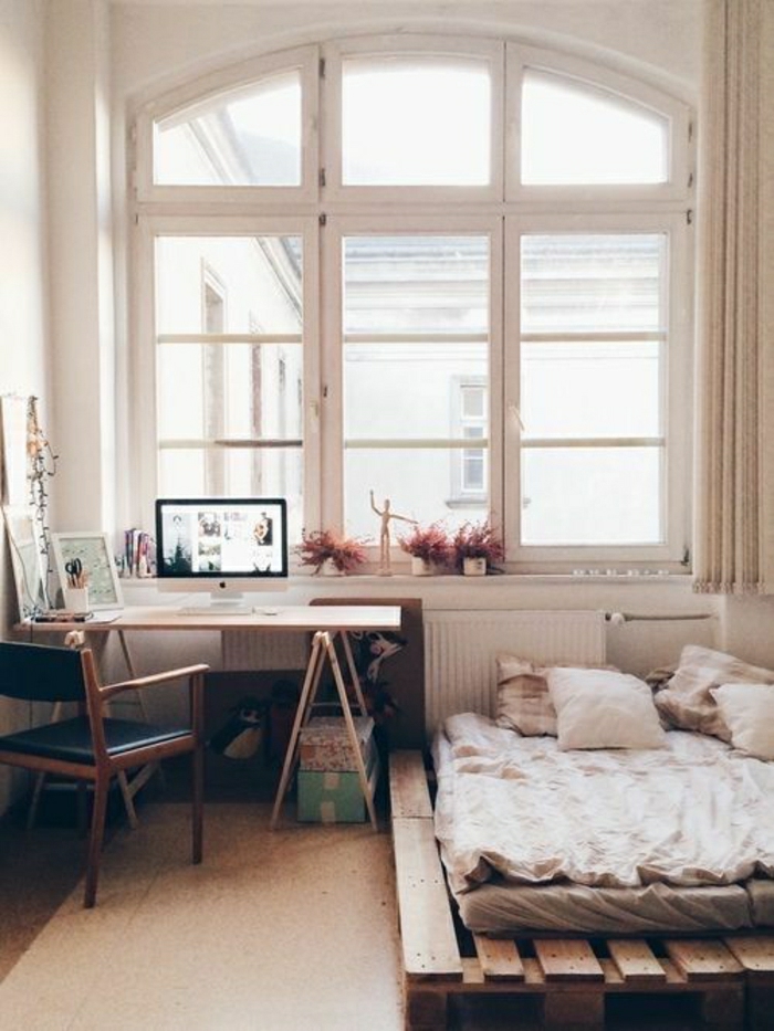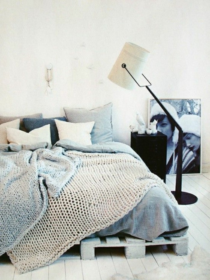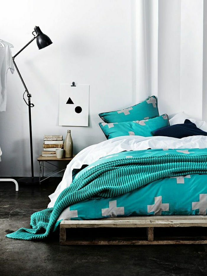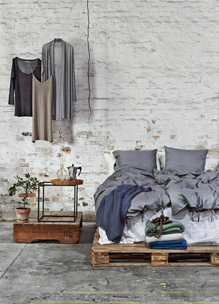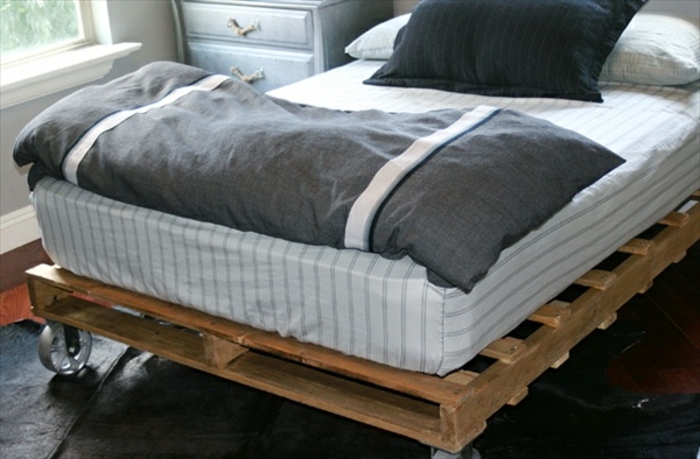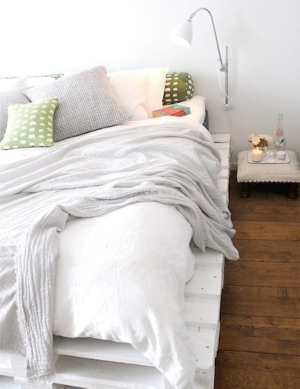 سرير مصنوع من المنصات بيديك هو نسخة اقتصادية ومبتكرة: للحصول على أثاث غير عادي مصنوع من مواد صديقة للبيئة.