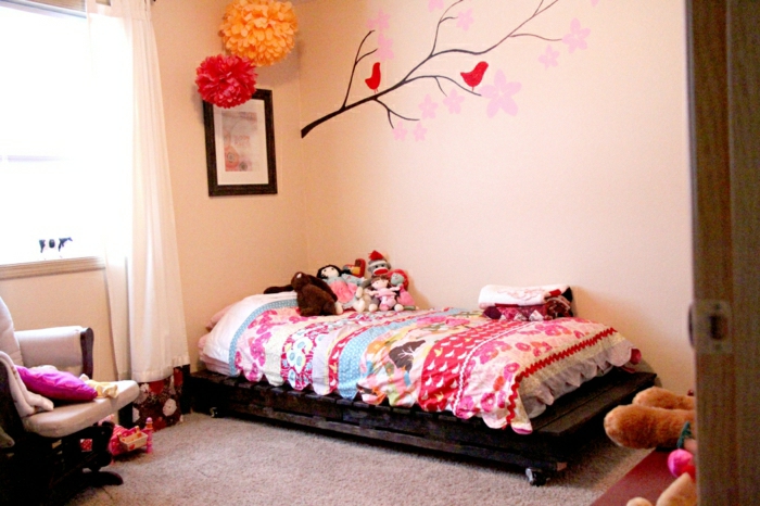 - المزهريات والأرضيات الساطعة والألعاب ستمنح لمسة خاصة لغرفة النوم التي تم تركيبها فيها سرير المنصاتالمصنعة من قبل افعلها بنفسك.