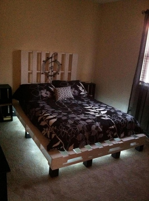 تم صنعه في الرسم المعتاد ، ومن خلال الفتحات الموجودة في المنصات ، تحتاج إلى تخطي الشريط باستخدام المصابيح أو تركيب إضاءة المصباح. ترتيب الإضاءة الخلفية LED يمكن أن يكون في الرأس سرير البليت، على ظهورها أو الجانبين ، وهذا يتوقف على أفكار الجمال والنفعية. يمكن أيضًا استخدام إضاءة المصباح لإضاءة السرير. ولكن من الأفضل استخدامه في شكل معلق أو لإضاءة الجدار.