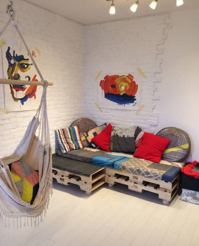 تطبيق منصات البناء ليس فقط في صناعة الأسرة. كسب شعبية مع المنتجات المصنوعة يدويا من المنصات. نماذج مصنوعة على شكل طاولات بجانب السرير ، حوامل تلفزيون ، أرائك ، طاولات وخيارات أخرى. يظهر أثاث هذه المادة في نظام ألوان واحد ويكمله العديد من الملحقات (الوسائد ، مصابيح الطاولة ، مفارش المائدة ، أغطية الأسرة).