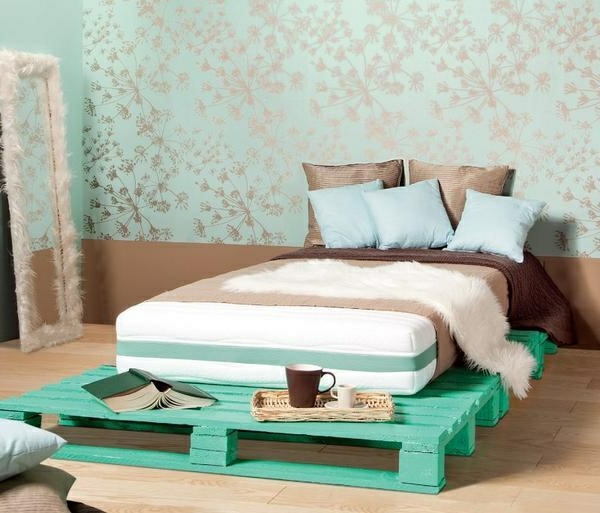 - والخطوة التالية هي تطبيق الطلاء. اختر الظل الذي تريد استخدامه في تصميم السرير. هز العلبة وفتح. حرك المحتويات بلطف. السكتات الدماغية على نحو سلس ، والطلاء على سطح البليت بأكمله. لا تنسى الداخل. يمكنك أن تأخذ مسدس رش ، باستخدامه ، سيكون تطبيق الطلاء أكثر ملاءمة وعملية. في انتظار التجفيف الكامل والورنيش ، ثم البدء في ربط المنصات معًا.