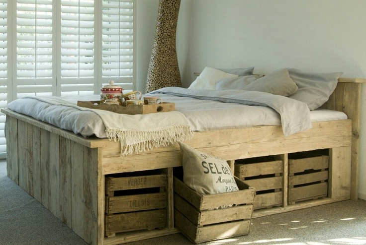 هيكل سرير مع أدراج ، مجمعة من ألواح خشبية
