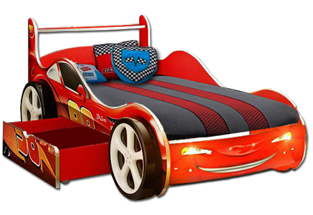 سرير سيارة جميل مع بطلك المفضل "Lightning McWin" مع مساحة تخزين إضافية للعب الأطفال