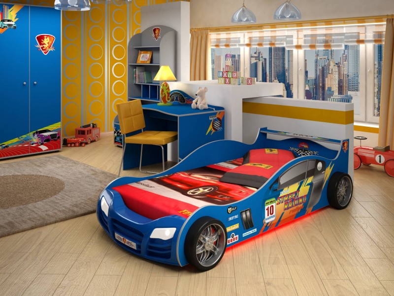 سرير الطفل الأصلي في شكل سيارة مع الضوء