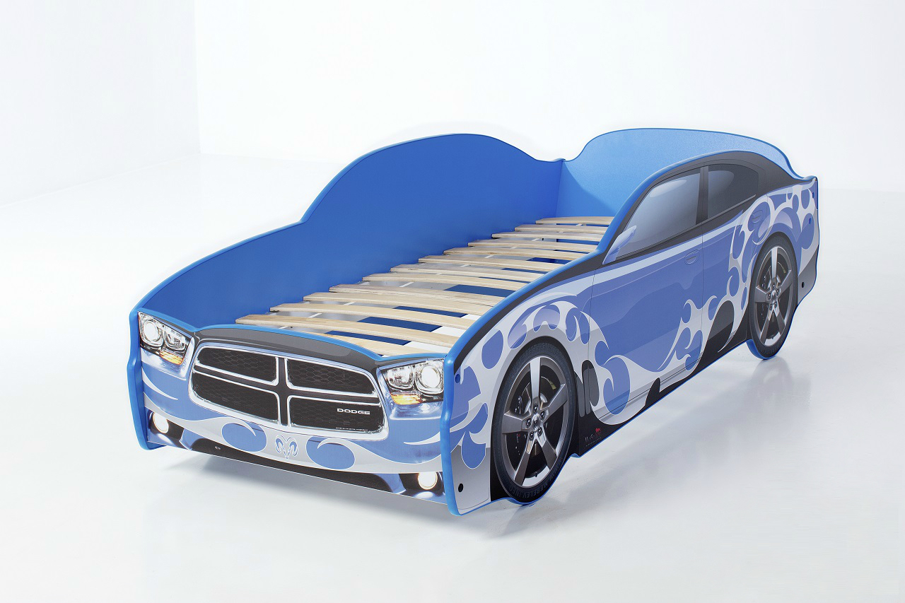 سرير سيارة أزرق مع درج لتخزين بياضات السرير